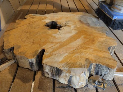 Wood cookies are hard to flatten because the grain runs in a circular pattern from the center outward, unlike straight-grained boards. This radial grain orientation causes uneven movement as the wood dries, leading to warping, cupping, or cracking. The irregular grain makes planing or sanding challenging, as the tool cuts across changing grain directions, increasing the risk of tear-out and an uneven surface. In other words, jointers and thicknessers/planers can damage the surface so a router bit is your best bet.